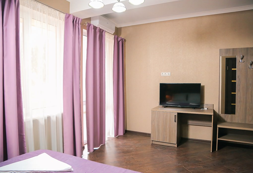 Площадь номера - 23 кв.м. 1 комната. 2 осн. места. В номере: телевизор; холодильник; балкон; кондиционер; душ; туалет; фен; Wi-Fi; туалетные принадлежности; стол; чайник; шкаф; прикроватная тумбочка; посуда (графин, стаканы). 2 доп. места: Диван-кровать - может быть установлен без ограничения по возрасту.